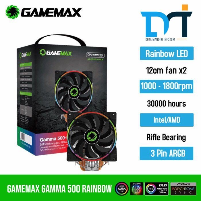 Jual Gamemax Gamma 500 Rainbow CPU Cooler Tower ARGB 5 Heatpipe Intel Gamemax Gamma 500 game max gamma 500 argb cpu cooler, argb leds, 5 heatpipes, 1 x 120mm argb fan, rgb mystic light sync, compatible for amd. • heat conducts2.5mm fin pitch high penetrability. gamemax gamma 500 argb cpu cooler, argb leds, 5 heatpipes, 1 x 120mm argb fan, rgb mystic light sync, compatible for amd and intel platforms | black/silver. . Gamemax Gamma 500.